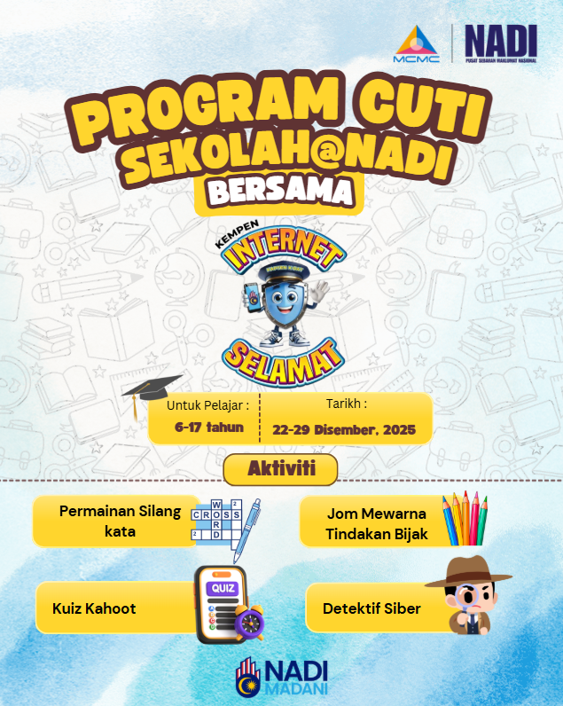 Kempen Internet Selamat: “Detektif Siber” Tarikh26 Disember 2025 (Jumaat) Masa3.00 petang – 4.00 petang TempatNADI Kampung Beruas Bilangan Peserta7 orang 1. Pengenalan Kempen Internet Selamat: “Detektif Siber” dianjurkan untuk meningkatkan kesedaran kanak-kanak dan remaja mengenai keselamatan penggunaan internet. Program ini […]