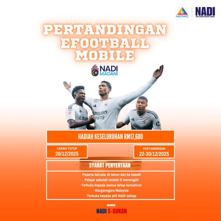 PERTANDINGAN E-FOOTBALL MOBILE PERINGKAT NEGERI Satu Pertandingan eFootball Mobile telah diadakan di NADI Kampung Beruas pada 26 Disember 2025. Pertandingan ini dianjurkan oleh NADI E-Sukan dengan tujuan menggalakkan penglibatan belia dalam aktiviti e-sukan secara sihat dan berdaya saing. Pertandingan ini […]