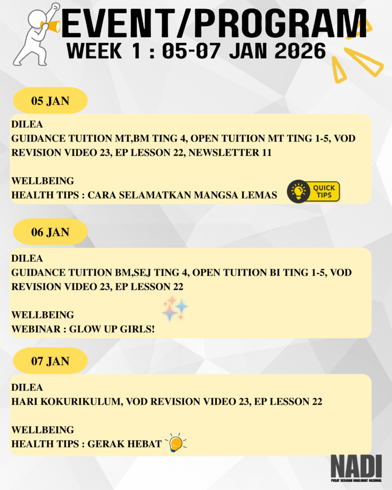 Mari kenali Media Sosial Alaf Baru dan gunakan teknologi secara selamat serta beretika. π Butiran Webinarπ Topik: Media Sosial Alaf Baruπ Tarikh: 31 Januari 2026 (Sabtu)π Masa: 10.00 pagi β 11.00 pagiπ Tempat: Atas talian (NADI Book) π₯ Terbuka kepada […]
