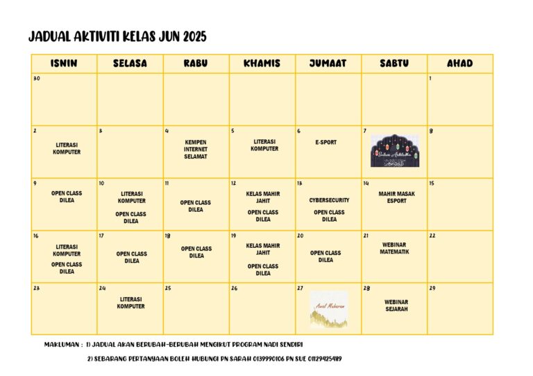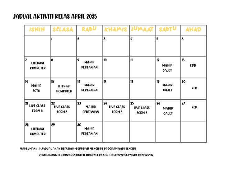Sebarang pertukaran atau pertambahan kelas tertakluk kepada Petugas NADI Kg Beruas