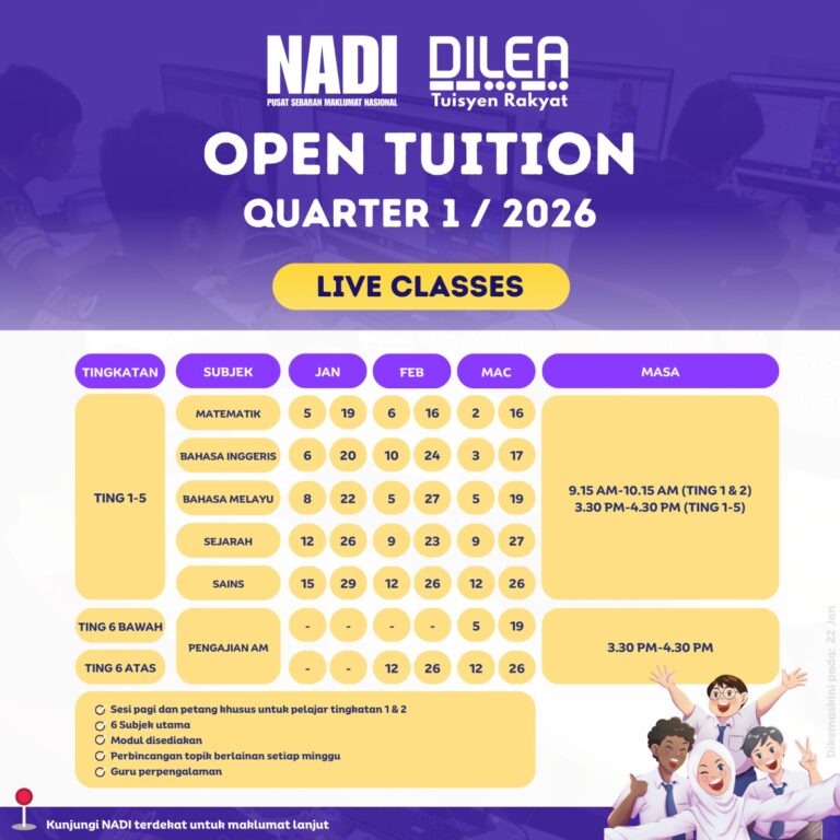 LAPORAN PROGRAM OPEN TUISYEN DILEA Subjek Sains Tingkatan 1 hingga 5 1. Maklumat Program 2. Pengenalan Program Open Tuisyen DILEA telah dianjurkan bagi memberi peluang kepada para pelajar Tingkatan 1 hingga Tingkatan 5 untuk mendapatkan bimbingan tambahan dalam subjek Sains. […]